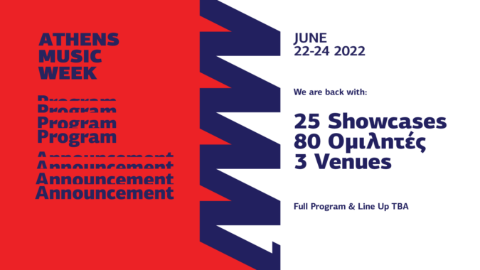 Για τέταρτη συνεχή χρονιά και σε μια καθοριστική στιγμή για την εγχώρια και παγκόσμια μουσική σκηνή στην μεταπανδημική εποχή, το Athens Music Week επιστρέφει με το βλέμμα στο μέλλον, 22-24 Ιουνίου, στην Τεχνόπολη Δήμου Αθηναίων, το Bios και το Temple. Τρεις μέρες γεμάτες συζητήσεις, παρουσιάσεις, workshops, speed meetings, networking events και φυσικά showcase συναυλίες αλλά και ένα μεγάλο closing live event στην κεντρική σκηνή της Τεχνόπολης!