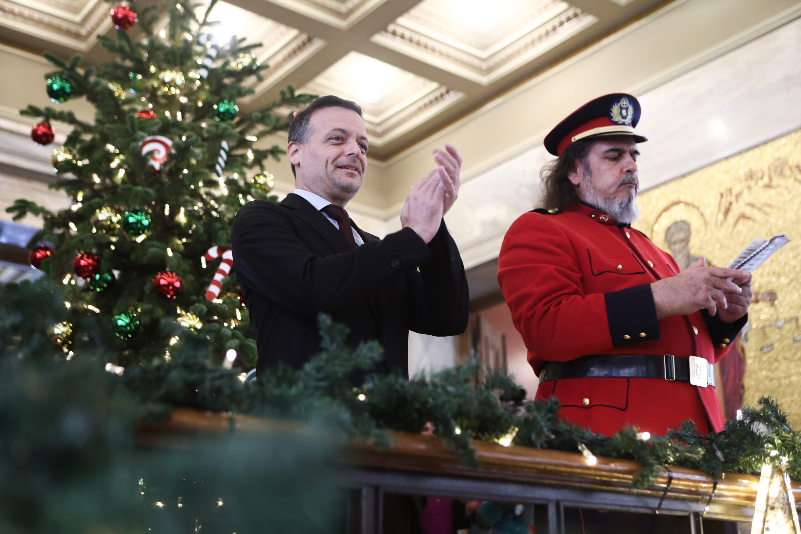 Ο Δήμαρχος Αθηναίων, Χάρης Δούκας, άκουσε σήμερα στο Δημαρχείο της Αθήνας τα Χριστουγεννιάτικα κάλαντα. Υποδέχθηκε την Πανηπειρωτική Συνομοσπονδία Ελλάδος, το Σώμα Ελληνικού Οδηγισμού, τις Λέσχες Φιλίας Παγκρατίου και Αγίου Αρτεμίου, τον Σύλλογο «Θρακιώτες Αθηνών», τη Φιλαρμονική Δήμου Αθηναίων και τον Ψυχαγωγικό Όμιλο Σιδηροδρομικών.