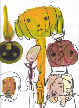 Τα ταξίδια του Γεωργίου διαμόρφωσαν, σε μεγάλο βαθμό, υφολογικά τα σχέδια. Στημένα σε νησίδες στις αίθουσες της Πινακοθήκης, απεικονίζουν μορφές που θα μπορούσαν να είναι απόγονοι των μορφών του 1993-94. Ζωόμορφες ή ανθρωπόμορφες, παιδικές και άφυλες, «σαν ακόλουθοι του Σίβα από το Βαρανάσι», οι μορφές αυτές αποτελούν την «οικογένεια» του καλλιτέχνη. Είναι μια «χορωδία φωτιάς και φίλων», «εύθραυστα αστέρια των τριών», ένα «ταξίδι με την οικογένεια». Κάθε σχέδιο έχει τον τίτλο του, ο οποίος είναι διαφωτιστικός, και μάλιστα σε τέτοιο βαθμό που αν ενώσεις όλους αυτούς τους τίτλους σχηματίζεται το κείμενο της έκθεσης. Όπως φανερώνουν οι τίτλοι των έργων του, ο Γεωργίου αναζητά αξίες και ιδανικά που τείνουν να εκλείψουν: τη φιλία, την ευτυχία, την καλοσύνη, την αγάπη και την ειρήνη.