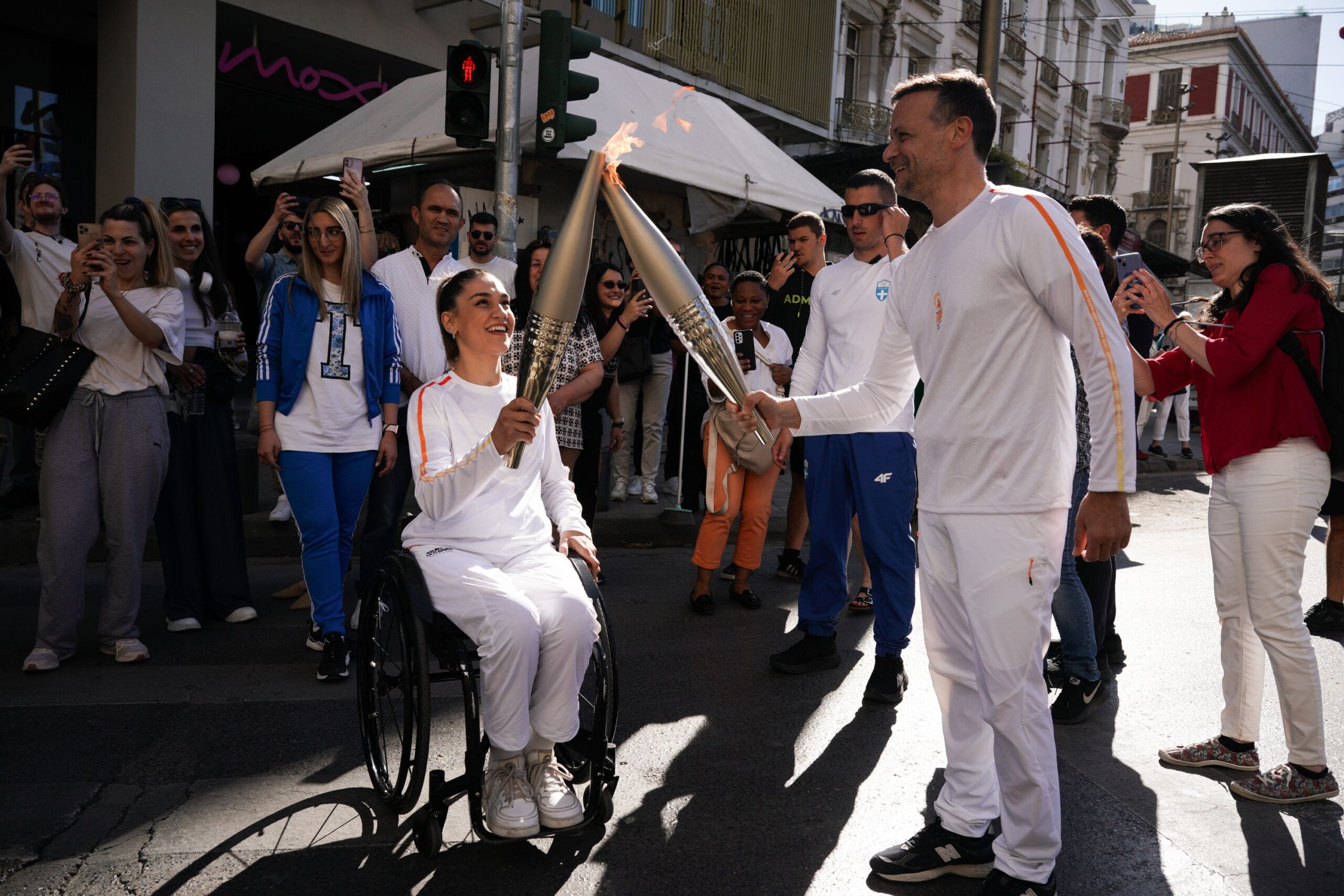 Έξω από το δημαρχείο της Αθήνας παρέλαβα το Ολυμπιακό Φως και σε συνέχεια παρέδωσα τη δάδα, στην ξεχωριστή μας πρωταθλήτρια ξιφασκίας, την Γεωργία Καλτσή.