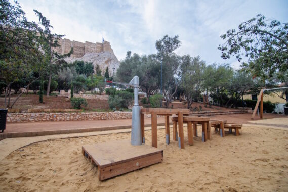 Μια υψηλών προδιαγραφών παιδική χαρά απολαμβάνουν, πλέον, οι μικροί Αθηναίοι κάτω από τον βραχώδη λόφο της Ακρόπολης, που δεσπόζει στο κέντρο της σύγχρονης Αθήνας. Πρόκειται για έναν νέο χώρο παιχνιδιού, ο οποίος βρίσκεται κάτω από το ανατολικό άκρο του βράχου και συνορεύει με τον αρχαιολογικό χώρο.