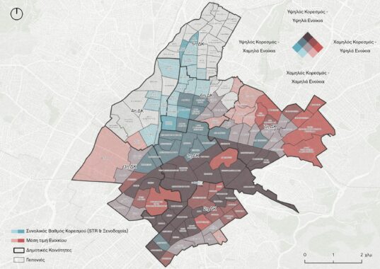 Ταυτόχρονα, 27 είναι οι γειτονιές που συνδυάζουν υψηλές τιμές κορεσμού με υψηλές μέσες τιμές ενοικίων.