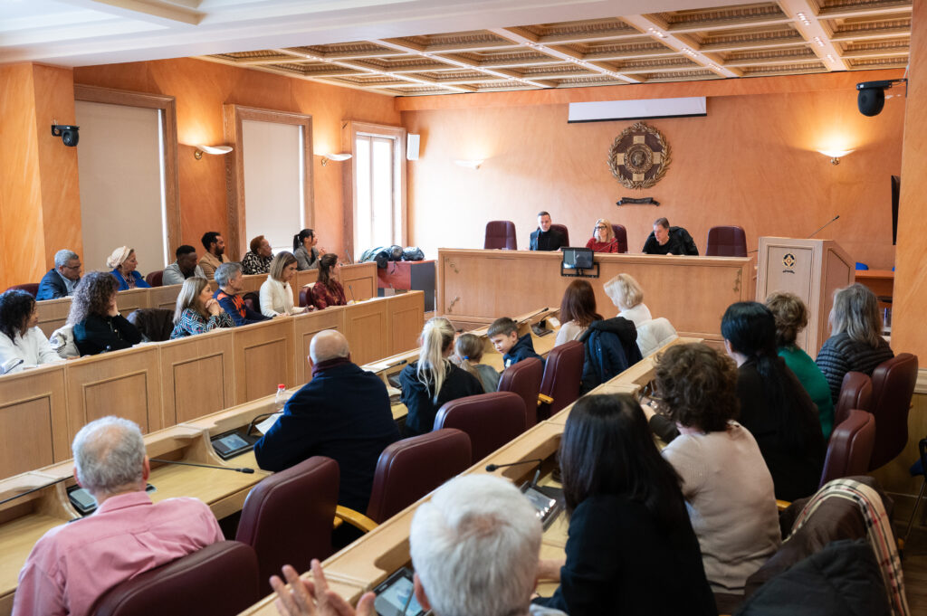 Ακολούθησε ανοιχτή συζήτηση με τους εκπροσώπους της Δημοτικής Αρχής, κατά την οποία τα συμμετέχοντα άτομα είχαν τη δυνατότητα να θέσουν ερωτήματα και να μοιραστούν εμπειρίες που αφορούν τη ζωή τους στην πόλη, ενισχύοντας τον διάλογο και την αλληλεπίδραση με τους θεσμικούς φορείς. Ολοκληρώνοντας την επίσκεψη, ξεναγήθηκαν στο Δημαρχιακό Μέγαρο, ένα κτίριο με ιδιαίτερη ιστορική σημασία, και επισκέφθηκαν σημαντικούς χώρους, όπως η αίθουσα Γουναρόπουλου.