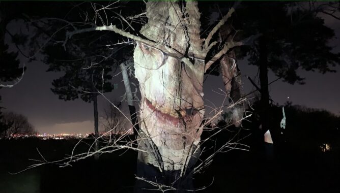 Το υλικό από τις προβολές πάνω σε όλα τα δέντρα που θα κινηματογραφηθούν στα πάρκα και στα δάση με κάμερες 360 4Κ, όπως και στο πάρκο Ελευθερίας θα μονταριστεί και θα προβληθεί σε τέσσερις οθόνες, μια βιντεοσκοπημένη αναπαράσταση του δάσους του Μπίρναμ (Birnamwood), καθώς και τη ζωντανή του περφόρμανς στο μοναδικό δέντρο που σώζεται σήμερα από το δάσος του Σαίξπηρ, όπου ο περφόρμερ θα ερμηνεύσει ζωντανά την τελευταία δραματική πράξη του έργου, και την εναντίωση του στο δάσος της προφητείας που θα τον σκοτώσει.