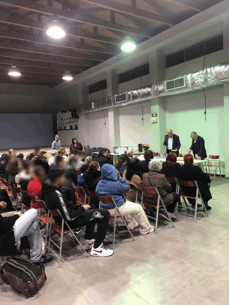 Στην κατάμεστη αίθουσα εκδηλώσεων του 41ου Γυμνασίου Αθηνών, την Παρασκευή 23 Φεβρουαρίου 2024 και ώρα 19:00 πραγματοποιήθηκε, μέσα σε φιλικό και εγκάρδιο περιβάλλον, η εκδήλωση κοπής της Πρωτοχρονιάτικης Βασιλόπιτας 2024 του Κοινωνικού μας Φροντιστηρίου.