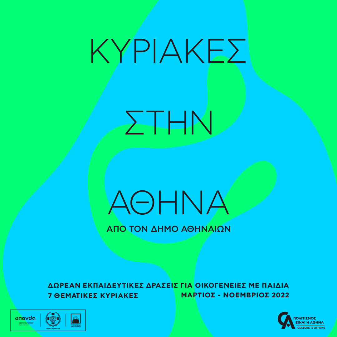 Από τον Μάρτιο μέχρι και τον Νοέμβριο, οι Κυριακές στην πόλη γεμίζουν με παιδικά χαμόγελα. Ο Δήμος Αθηναίων προσκαλεί παιδιά από 3-17 ετών και τους γονείς τους να συμμετάσχουν στις «Κυριακές στην Αθήνα», μία σειρά συναρπαστικών εκπαιδευτικών και ψυχαγωγικών δράσεων δημιουργικής μάθησης.