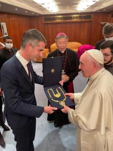 Ο Δήμαρχος Αθηναίων, μετέφερε στον προκαθήμενο της Ρωμαιοκαθολικής Εκκλησίας τον βαθύ σεβασμό του ίδιου, καθώς και των εκπροσώπων του Δημοτικού Συμβουλίου και τον ευχαρίστησε για την προσφορά του στον Άνθρωπο, τον οποίο θέτει πάντοτε στο επίκεντρο με τον λόγο και τις δυνατές πράξεις του.