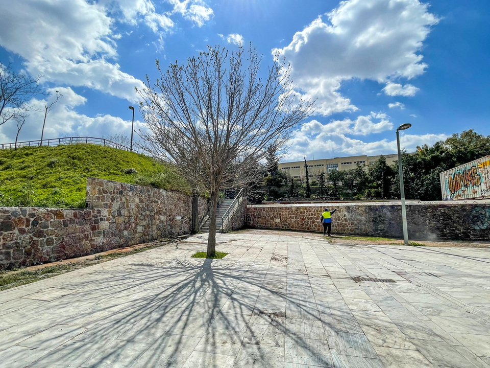 Στην μεγάλη επιχείρηση ευπρεπισμού και αντιγκράφιτι τα εξειδικευμένα συνεργεία της Διεύθυνσης καθαριότητας του Δήμου Αθηναίων, υπό τον συντονισμό του αρμόδιου αντιδημάρχου Νίκου Αβραμίδη, εργάστηκαν νυχθημερόν για περισσότερες από 18 ημέρες και ανέτρεψαν την εικόνα εγκατάλειψης και βρωμιάς σε μια περιοχή πλούσια σε υπαίθρια αρχαιολογικά ευρήματα.