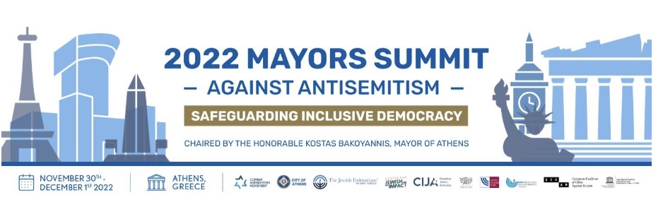 Στην Αθήνα πραγματοποιείται, την Τετάρτη 30 Νοεμβρίου και την Πέμπτη 1η Δεκεμβρίου, το 2022 Mayors Summit Against Antisemitism (MSAA), με οικοδεσπότη τον Δήμαρχο Αθηναίων και Πρόεδρο του 2022 MSAA, Κώστα Μπακογιάννη. Είναι η μεγαλύτερη συνάντηση Δημάρχων, στο πλαίσιο των παγκόσμιων δράσεων κατά του αντισημιτισμού, καθώς σε αυτό θα συμμετάσχουν περισσότεροι από 25 Δήμαρχοι και δεκάδες αξιωματούχοι της τοπικής αυτοδιοίκησης, από όλο τον κόσμο, προκειμένου να μοιραστούν τις προκλήσεις και τις προτάσεις τους για την καταπολέμηση του μίσους, του φανατισμού και του αντισημιτισμού στις πόλεις τους, διαφυλάσσοντας ένα κοινό δημοκρατικό μέλλον.