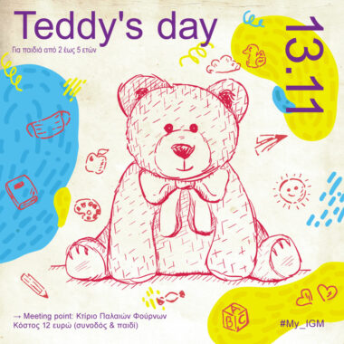 Η αγαπημένη δράση των μικρών μας φίλων επιστρέφει! Την Κυριακή 13 Νοεμβρίου, η ομάδα του Βιομηχανικού Μουσείου Φωταερίου διοργανώνει ένα απίθανο Teddy’s day, προσκαλώντας οικογένειες με παιδιά 2 έως 5 ετών και τα αγαπημένα τους teddies (λούτρινα ζωάκια, αρκουδάκια, χελωνάκια, ψάρια ή ό, τι άλλο μπορείς να φανταστείς) να περάσουν ένα όμορφο κυριακάτικο πρωινό στην Τεχνόπολη Δήμου Αθηναίων.