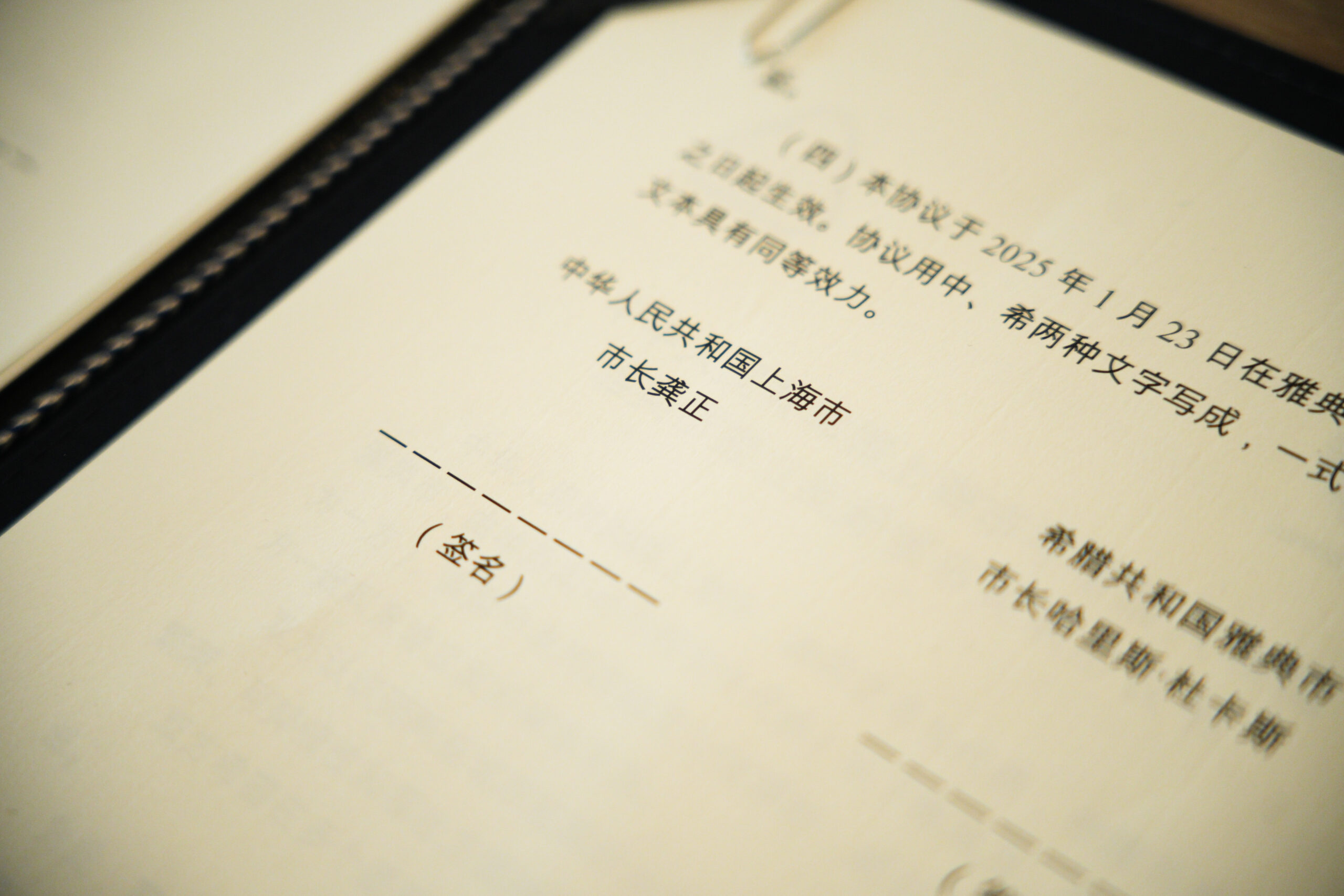 Ο Δήμαρχος Αθηναίων, Χάρης Δούκας και ο Δήμαρχος Σαγκάης, Zheng Gong, επισφράγισαν μια στενότερη και ακόμη πιο παραγωγική συνεργασία μεταξύ των δύο πόλεων, με την Υπογραφή Συμφωνίας Αδελφοποίησης, που έλαβε χώρα στο Δημαρχιακό Μέγαρο Αθηνών, την Πέμπτη 23 Ιανουαρίου 2025, στο πλαίσιο επίσημης επίσκεψης που πραγματοποιεί ο Δήμαρχος Σαγκάης στην Ελλάδα ως επικεφαλής μεγάλης αντιπροσωπείας.