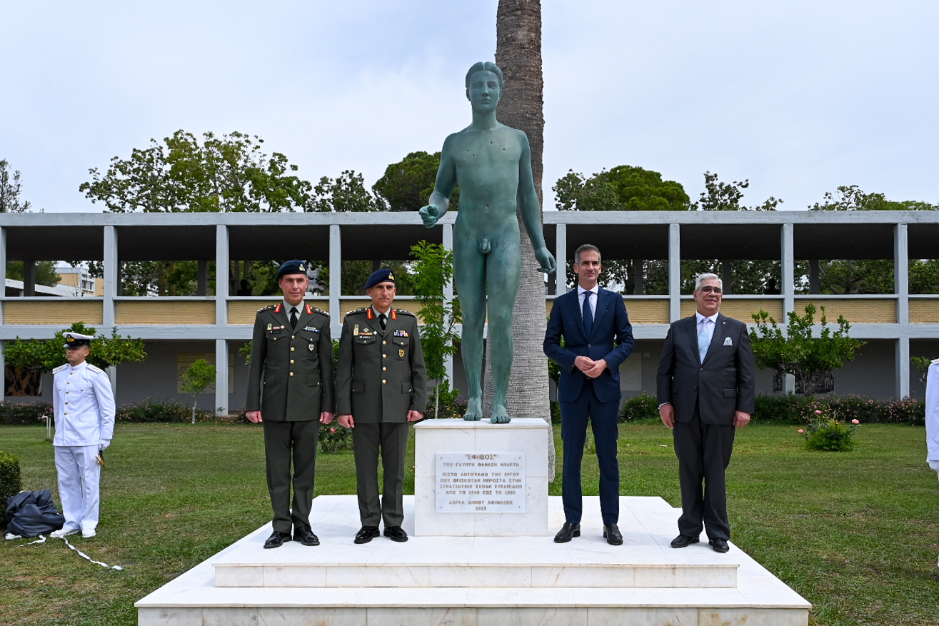 Το πιστό αντίγραφο του εντυπωσιακού αγάλματος του “Εφήβου”, που δώρισε ο Δήμος Αθηναίων προς τη Στρατιωτική Σχολή Ευελπίδων, αποκαλύφθηκε από τον Δήμαρχο Αθηναίων Κώστα Μπακογιάννη, σε μία συγκινητική τελετή που πραγματοποιήθηκε στις εγκαταστάσεις της Σχολής, στη Βάρη.