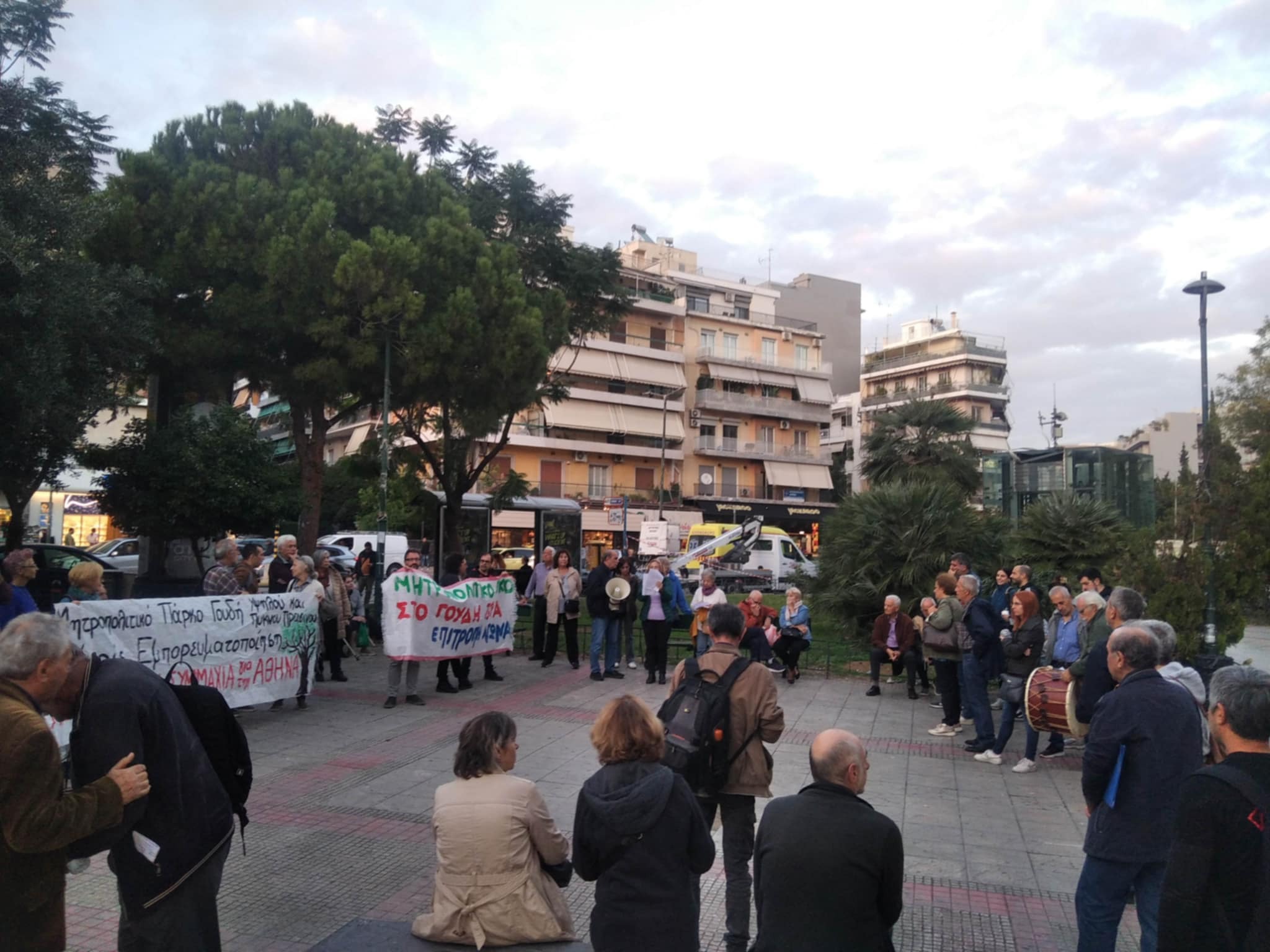 Χθες Πέμπτη 23 Οκτωβρίου πραγματοποιήθηκε συγκέντρωση κατοίκων και πορεία προς το ΥΠΕΝ, που κάλεσαν η Επιτροπή Αγώνα για το Μητροπολιτικό Πάρκο Γουδή, ο Πολιτιστικός Σύλλογος Άνω Αμπελοκήπων, ο Πολιτιστικός Σύλλογος “Ο Ιλισός”, ο περιβαλλοντικός Σύλλογος “Ο Υμηττός” και η Β’ ΕΛΜΕ Αθήνας.