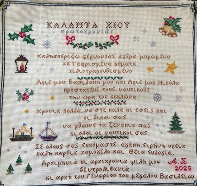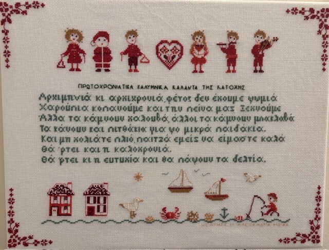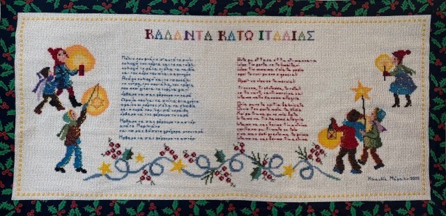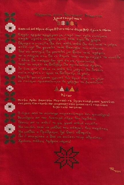 Κάθε κέντημα που θα αντικρίσουμε στον εκθεσιακό χώρο της χριστουγεννιάτικης ατμόσφαιρας του Μουσείου θα μας ταξιδέψει στον τόπο που γεννήθηκε αυτή η παραλλαγή με την διαφορετική μελωδική ανάσα, την μικρή τοπική ιστορία που έγινε φορέας μνήμης και θα ακουστεί είτε στα καλντερίμια κάποιου νησιού, είτε στις χιονισμένες αυλές της ενδοχώρας, είτε στις πόλεις, μπροστά στο φως μιας γιορτινής εστίας που ζεσταίνει την οικογένεια.