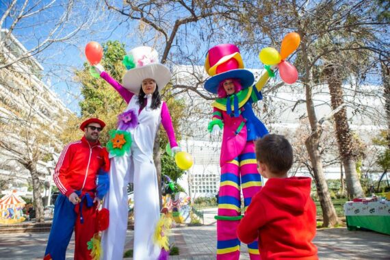 Παιδική αποκριάτικη γιορτή με μουσική, ξυλοπόδαρους, εμψυχωτές, ταχυδακτυλουργούς και δημιουργικές δραστηριότητες.